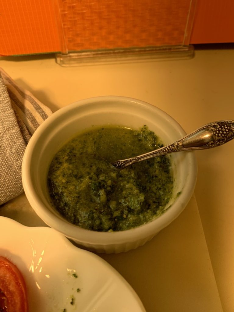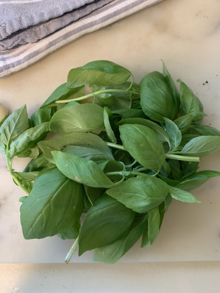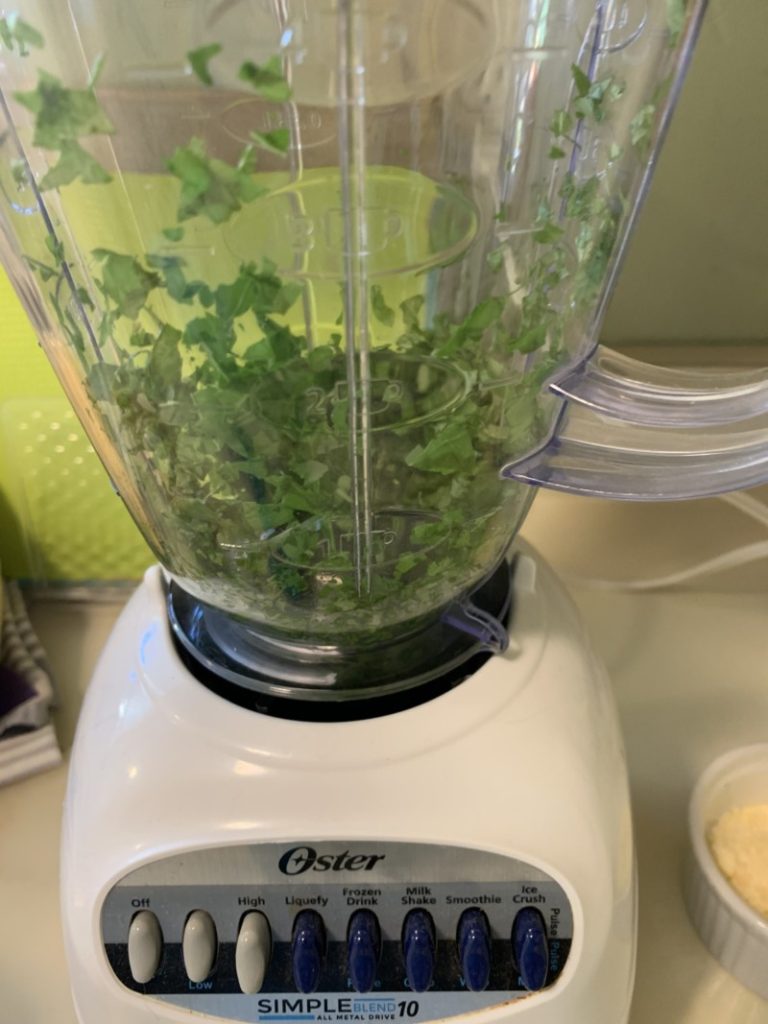 Armed with the Fodmap App and the helpforibs.com cheat sheet, I decided to try making a pesto using only low fodmap and soluble fiber ingredients. My Italian family’s Abruzzi Italian recipe for pesto includes tons of basil, huge amounts of olive oil, a lot of parmesan or pecorino grated cheese, chopped raw garlic and a cup of pine nuts or walnuts. Many of these ingredients could send me to Il Bagno for a week. Yikes! Still, as I began my pesto recipe revamp, I said a silent prayer that my Italian ancestors in Heaven don’t ask God to strike me dead for messing with their recipe. lol.