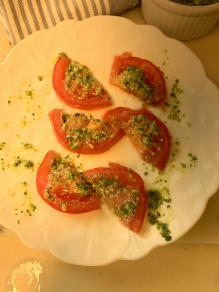 So here is my revamped, low fodmap pesto recipe that tastes divine on pasta, pasta salad, tomatoes, and risotto. Yum!