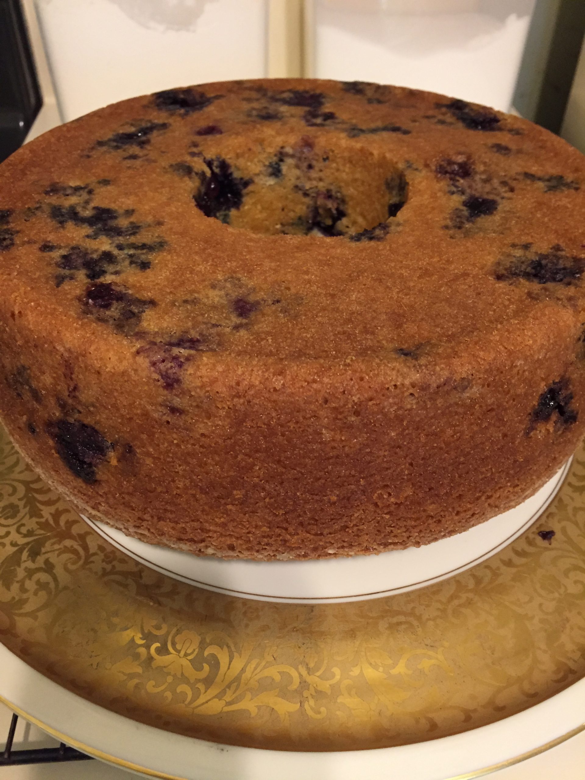 The directions are so easy that you will not believe you created this stunner with almost no effort. For baking instructions, pay attention to the color of your tube pan. Dark pans bake at a lower temp than a shiny stainless steel pan. In fact, dark baking pans bake better in an oven 25 degrees less than the recipe suggests. If you are using a shiny tin, the temp remains the same as suggested in the recipe. Before I found this out, all my cakes and muffins were getting too dark on the sides before the middle had a chance to bake through.