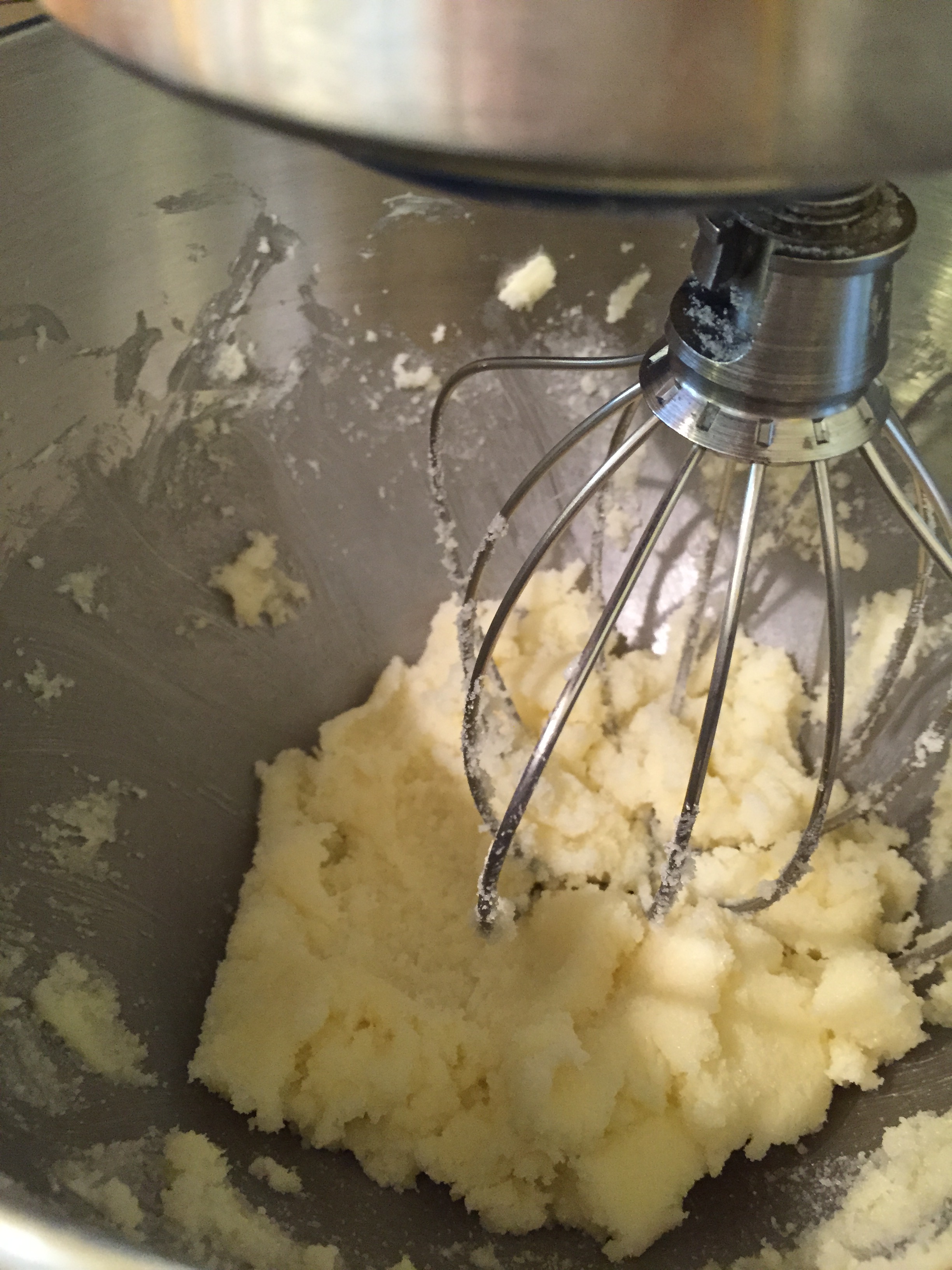 - * Beat the butter on medium until soft and creamy.* Start slowly adding in the sugar a little at a time, making sure the butter stays soft and creamy. When all the sugar is added, continue to beat for another minute. Next, add in an egg and keep beating the batter on medium until the egg is completely incorporated. Then add in the second egg and continue to beat on medium until that egg is also completely incorporated into the batter.