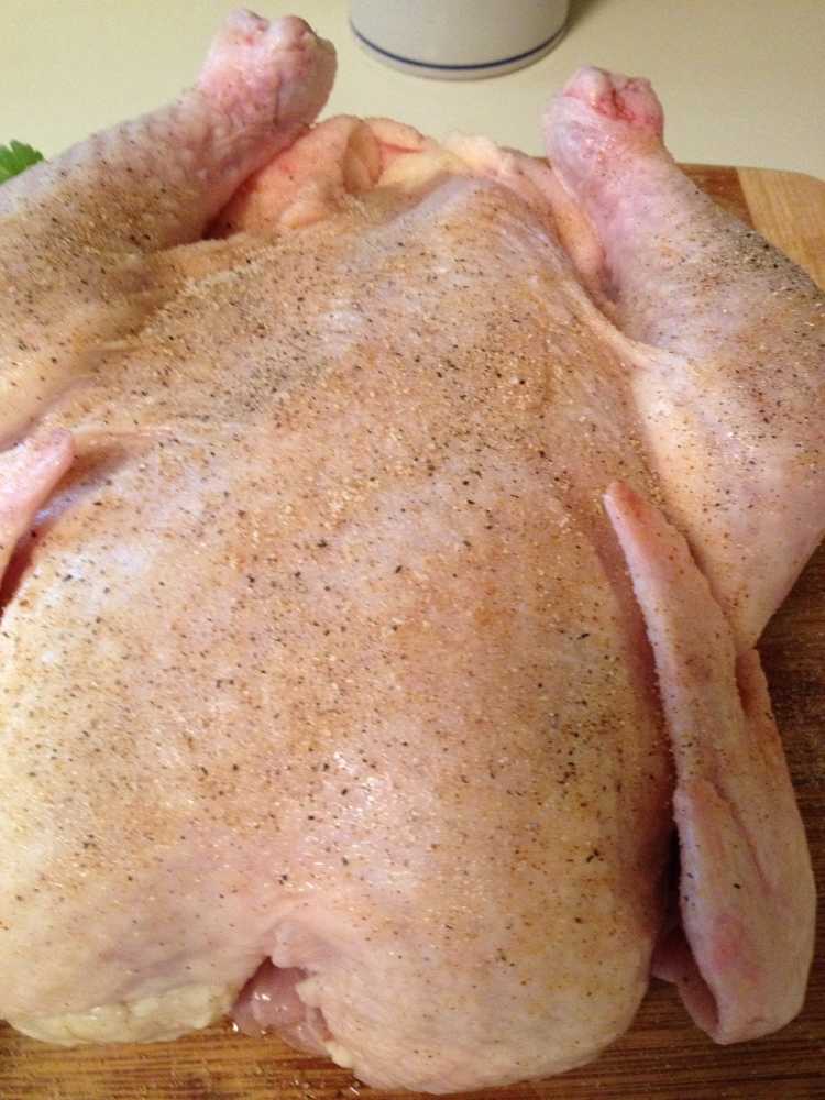 Salt, pepper and Fody Food Lemon Pepper to sprinkle on the raw chicken