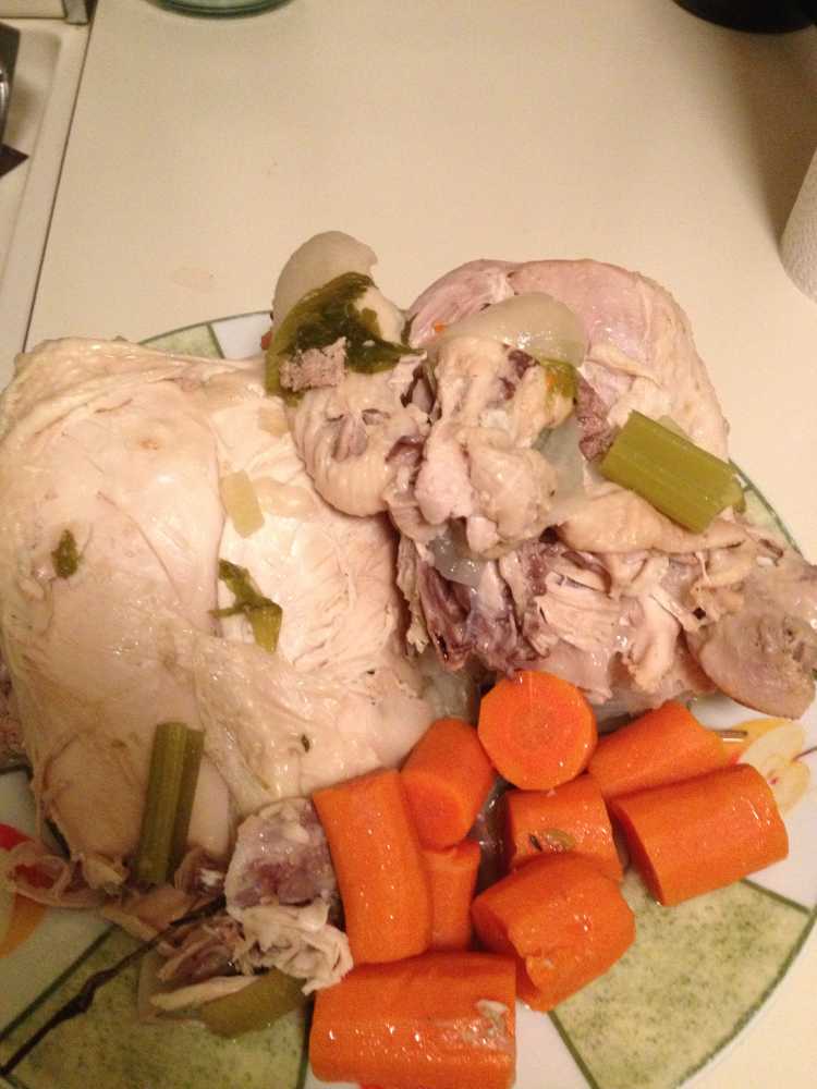 In the end I get several quarts of soup and mounds of tender boiled chicken that I can use in chicken pot pie, chicken tetrazzini casserole, with GF egg noodles or in GF matzo balls. See for yourself what one fat organic chicken can produce for you. No wonder Herbert Hoover won the election when he promised “a chicken in every pot.”