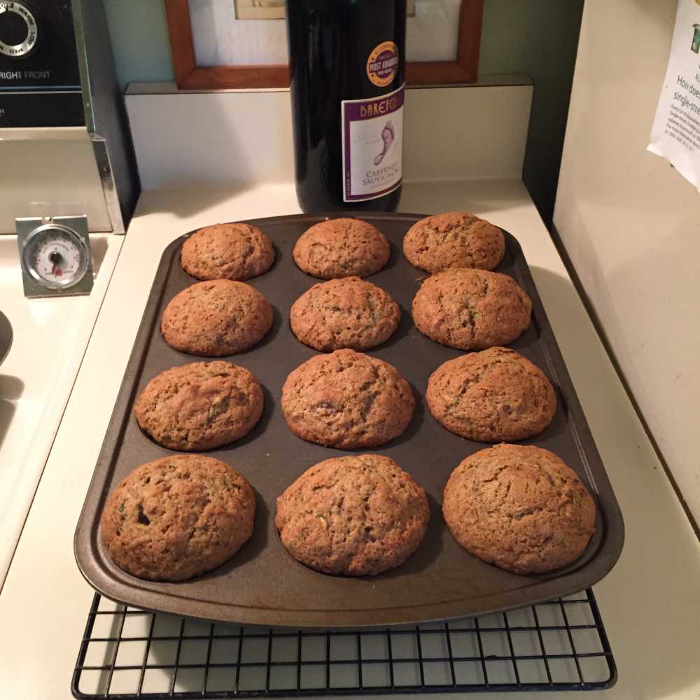 These extra big, moist, delicate muffins are loaded with freshly grated zucchini I bought at a local farm stand, flavored with freshly churned butter from Maine and infused with a mixture of cinnamon, allspice and grated nutmeg.